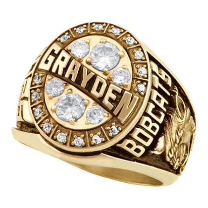 The boys' 14kt yellow gold Elite class ring has cubic zirconia accents on top along with name or graduation year. Personalize this high school ring with engravings and side emblems. Enjoy ArtCarved's limited lifetime warranty. Ring top width: 19mm, palm width: 7.2mm. Import.