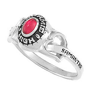 The girls' 14kt white gold Heartstrings class ring has a petite oval stone and two side engraving areas. Choose stone color and engravings. This high school class ring is handcrafted by ArtCarved. Ring top width: 9.0mm, palm width: 2.0mm. Enjoy ArtCarved's limited lifetime warranty. Import.