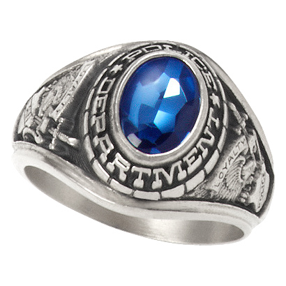 This ladies' 10kt white gold Gold Lance police ring offers your choice of stone, wording around the stone and side engravings. Handcrafted in USA by Gold Lance. Solid back.