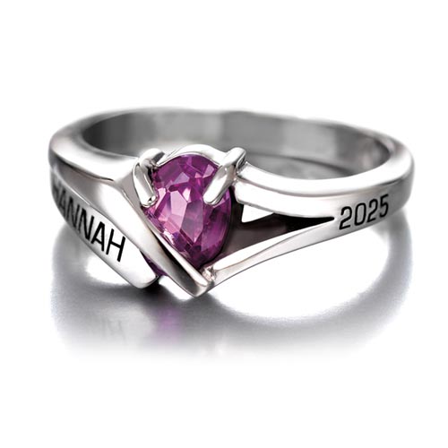 The girls' Shanelle class ring in white lazon offers her choice of color for the simulated oval stone along with two engravings. Handcrafted in the USA by Gold Lance. Personalize this high school ring with her name, school name or graduation year on the sides of the ring. Oval stone is 7mm x 5mm. Enjoy Gold Lance's limited lifetime warranty.