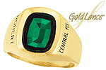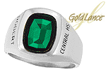 Personalize the boys' Aston class ring with your name, school name or graduation year on the sides. Engraving is always in capital letters. The Aston ring boasts a smooth polished finish, and is handcrafted in the USA by Gold Lance.