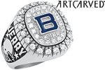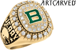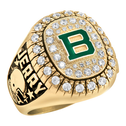 The boys large Monogram Patriot ring features a single letter on top surrounded by cubic zirconia accents. Solid back ring is handcrafted in the USA by ArtCarved. Ring top width: 21.4mm, palm width: 6.4mm. This class ring offers your choice of side emblems and engravings.