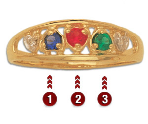 Why is this ring yellow or white? The Mother's Ring Builder uses yellow gold or white gold for displaying the styles, depending on the artwork available. This does not reflect the metal type chosen.