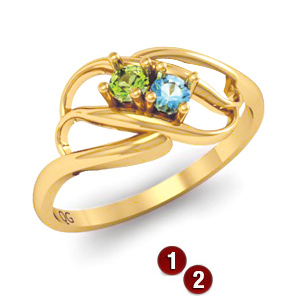Family Resemblance Ring with 2 simulated birthstones in 14kt yellow gold