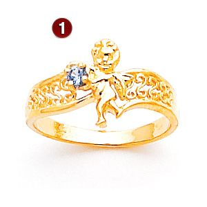 Guardian Angel Ring with 1 simulated birthstone in 14kt yellow gold