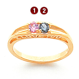 I Love You Ring with 2 genuine birthstones in 14kt yellow gold