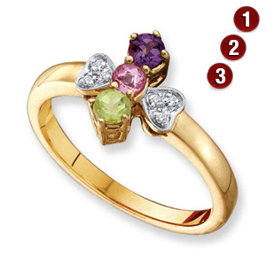 Secure Hearts Ring with 3 simulated birthstones in 14kt yellow gold
