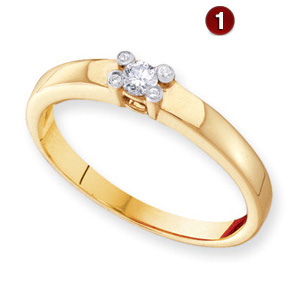 Choose polished 14k white or yellow gold. This ring offers stone personalization for 1-4 round gemstones. Each prong-set gemstone is 2.75mm in diameter. Choose simulated or genuine gemstones. Made in USA. Both genuine and simulated stone rings have diamond accent stones [.01 ct tw, I1 clarity, G-I color].
