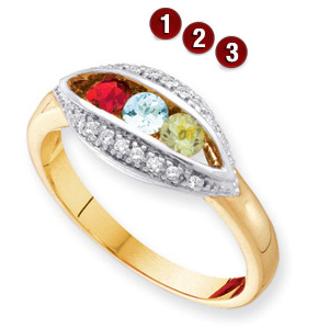 Loving Gaze Ring with 3 genuine birthstones in 14kt yellow gold