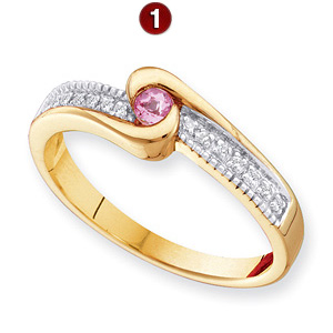 Choose polished 14k yellow or white gold. This ring offers stone personalization for 1-4 round gemstones. Each prong-set gemstone is 2.75mm in diameter. Choose simulated or genuine gemstones. Made in USA. Both genuine and simulated stone rings have diamond accent stones [.05 ct tw, I1 clarity, G-I color]. Approximate weight: 3.0 grams.