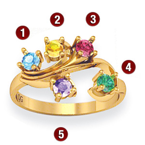 Fleur-de-lis Ring with 5 simulated birthstones in 14kt yellow gold