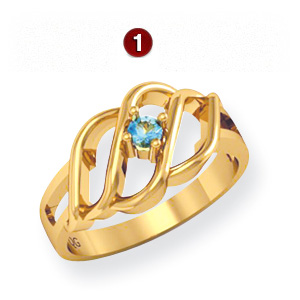 This 14kt yellow gold ring features personalization for 1 birthstone. Each prong-set gemstone is 2.5mm in diameter. It is available with simulated or genuine birthstones. Weight: 5.19 grams.
