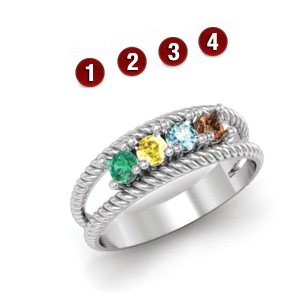 Satin Rope Ring with 4 simulated birthstones in 14kt white gold