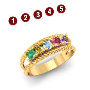Satin Rope Ring with 5 simulated birthstones in 14kt yellow gold