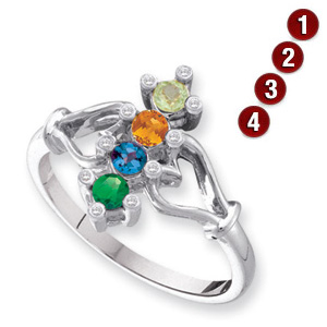 Family Loop Ring with 4 genuine birthstones in 14kt white gold