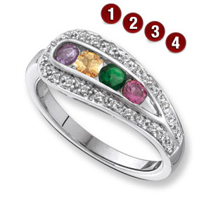 Family Nest Ring with 4 genuine birthstones in 14kt white gold