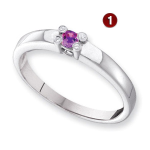 Choose polished 14k white or yellow gold. This ring offers stone personalization for 1-4 round gemstones. Each prong-set gemstone is 2.75mm in diameter. Choose simulated or genuine gemstones. Made in USA. Both genuine and simulated stone rings have diamond accent stones [.01 ct tw, I1 clarity, G-I color].