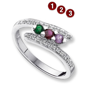 Polished 14kt white gold. This ring offers stone personalization for 1-6 round gemstones. Each gemstone is 2.75mm in diameter. Choose simulated or genuine gemstones. Made in USA. Both genuine and simulated stone rings have I1 clarity, G-I color diamond accent stones.
