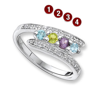 Polished 14kt white gold. This ring offers stone personalization for 1-6 round gemstones. Each gemstone is 2.75mm in diameter. Choose simulated or genuine gemstones. Made in USA. Both genuine and simulated stone rings have I1 clarity, G-I color diamond accent stones.