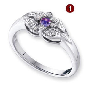 Floral Ring with 1 genuine birthstone in 14kt white gold