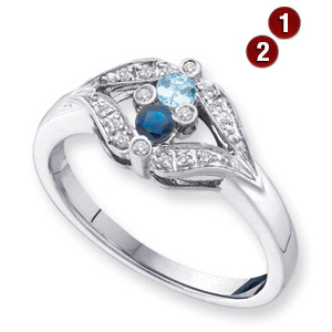 Floral Ring with 2 simulated birthstones in 14kt white gold