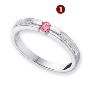 Choose polished 14k white or yellow gold only. This ring offers stone personalization for 1-4 round gemstones. Each gemstone is 3.0mm in diameter. Shared prongs. Choose simulated or genuine gemstones. Made in USA. Both genuine and simulated stone rings have diamond accent stones [.05 ct tw, I1 clarity, G-I color].