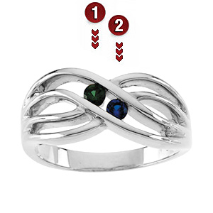 Sloping Twist Sterling Silver Mother's Ring with 2 genuine birthstones