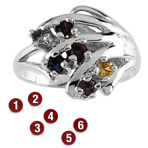 Family Nook Sterling Silver Mother's Ring with 6 genuine birthstones