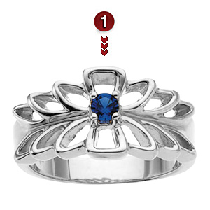 Make an elegant statement with this family ring. Each prong-set gemstone is 3mm in diameter. It is available with simulated or genuine birthstones. Sterling silver only.