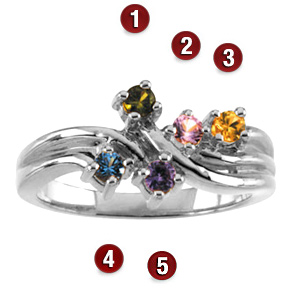 The sterling silver Family Branches mother's ring features five simulated 3mm round gemstones of your choice. Import.