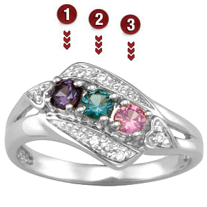 Enchanting Mother's Ring with 3 simulated birthstones in 14kt white gold
