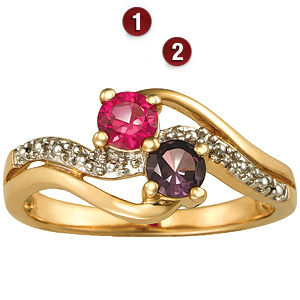 10kt Yellow Gold Juliet Ring with 2 genuine birthstones