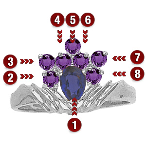 The Celestial Orbit ring measures about 5.0 mm at the top center. This ring accepts 1-5 stones. One 6x4mm pear shaped and 2.5mm rounds.