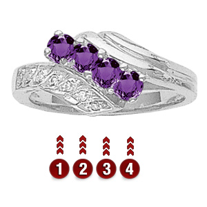 The Path of Fate ring looks great for any occasion. Birthstones are accented with channel-set cubic zirconias. The ring measures about 9.5 mm at the top center. This ring accepts 2-7 stones that are 2.50mm round.