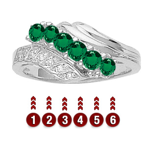 The Path of Fate ring looks great for any occasion. Birthstones are accented with channel-set cubic zirconias. The ring measures about 9.5 mm at the top center. This ring accepts 2-7 stones that are 2.50mm round.