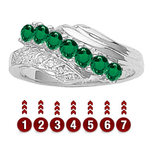 The Path of Fate ring looks great for any occasion. Birthstones are accented with channel-set cubic zirconias. The ring measures about 9.5 mm at the top center. This ring accepts 2-7 stones that are 2.50mm round.