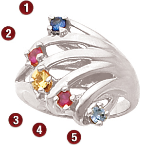 Make an elegant statement with this family ring. Each prong-set gemstone is 2.5mm in diameter. It is available with simulated or genuine birthstones. Sterling silver only.