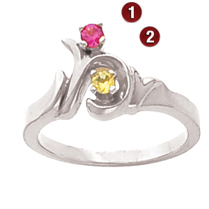Family Curl Sterling Silver Mother's Ring with 2 simulated birthstones