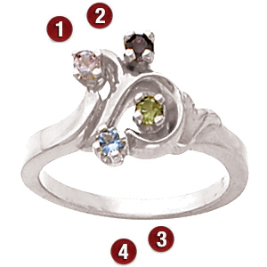 Family Curl Sterling Silver Mother's Ring with 4 simulated birthstones