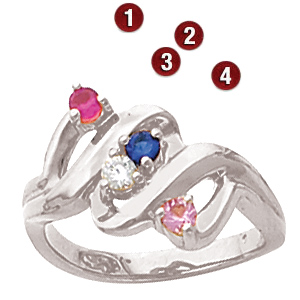 Kinship Ring with 4 simulated birthstones in Sterling Silver