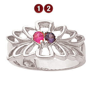 Make an elegant statement with this family ring. Each prong-set gemstone is 3mm in diameter. It is available with simulated or genuine birthstones. Sterling silver only.