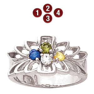 Make an elegant statement with this family ring. Each prong-set gemstone is 3mm in diameter. It is available with simulated or genuine birthstones. Sterling silver only.