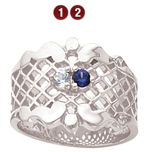 Family Quilt Sterling Silver Mother's Ring with 2 simulated birthstones
