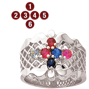 Family Quilt Sterling Silver Mother's Ring with 6 simulated birthstones