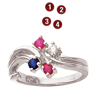 Make an elegant statement with this family ring. Each prong-set gemstone is 3mm in diameter. It is available with simulated or genuine birthstones. Sterling silver only.