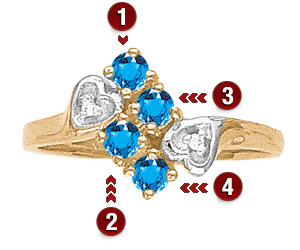 Dazzling Hearts with 4 genuine birthstones in 10kt yellow gold