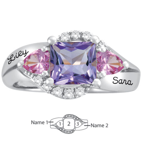 Twinkle Promise Ring 10kt White Gold with 3 simulated birthstones