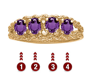 Why is this ring yellow or white? The Mother's Ring Builder uses yellow gold or white gold for displaying the styles, depending on the artwork available. This does not reflect the metal type chosen.