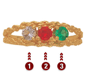 Why is this ring yellow or white? The Mother's Ring Builder uses yellow gold or white gold for displaying the styles, depending on the artwork available. This does not reflect the metal type chosen.