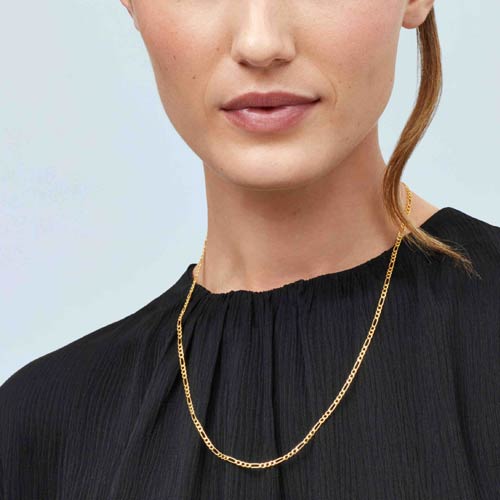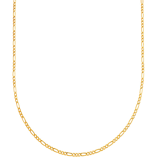 This lightweight 14k yellow gold 22in hollow Figaro chain has a lobster clasp. Width: 2.6mm. Approximate weight: 2.1 grams. Made in Italy. Ships from the USA.